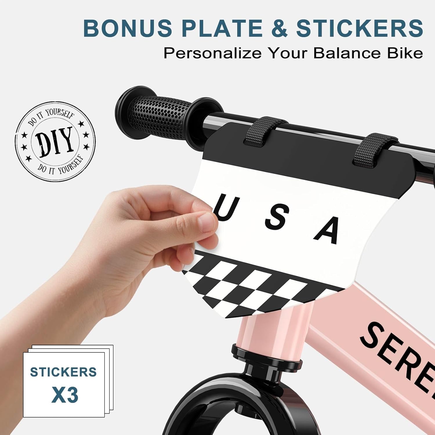- WHY YOU NEED IT?- With the no pedals bicycle, child will learn balance and steering, boost self-confidence, which makes transitioning to a pedal bike much smoother. In addition, bonus plate and stickers let kids personalize their own balance bike!