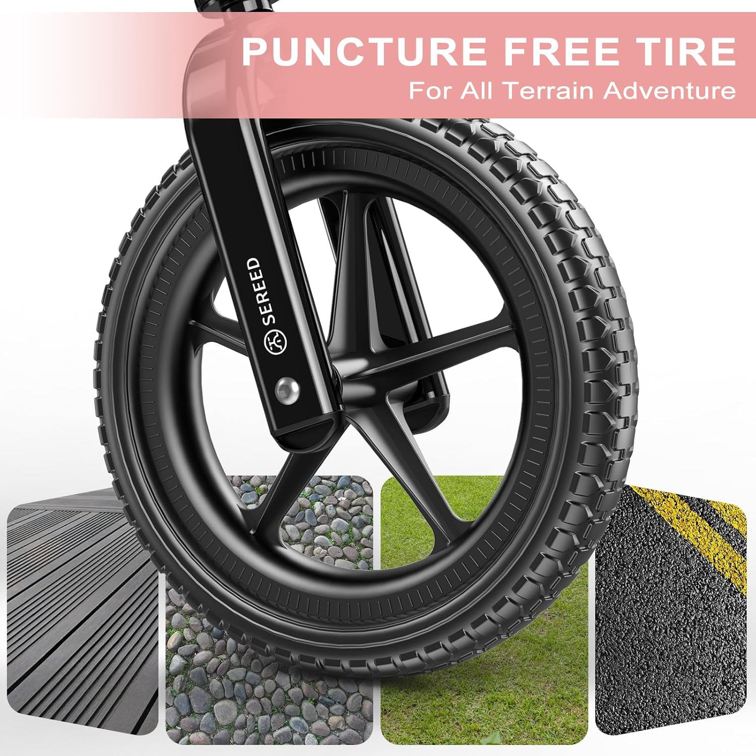 - STURDY AND SAFE- What you think for your kids is what SEREED toddler balance bike have. Wide and tough carbon steel frame, supports up to 110 lbs, safe footrest pad, rubber grips, soft saddle and a 12.6 inch starting seat height, let your little one enjoy cycling at an early age!